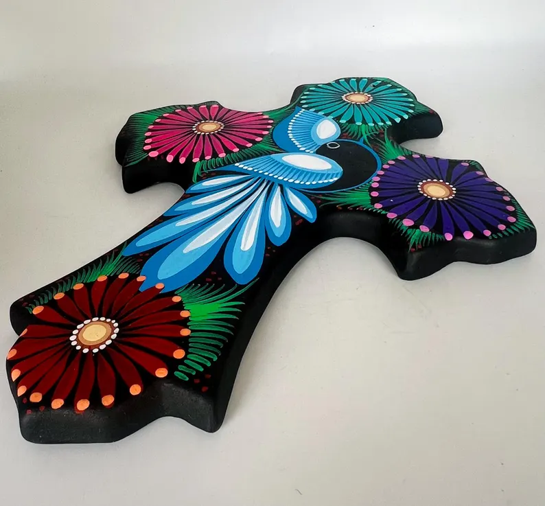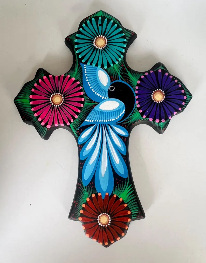 Mexican Colorful Cross, Perfect as a decorative wall hanging, this cross makes a meaningful gift for a loved one or a unique accent piece for your home.