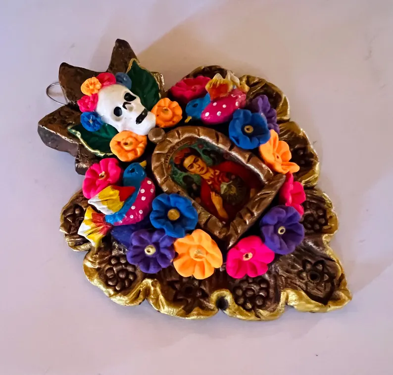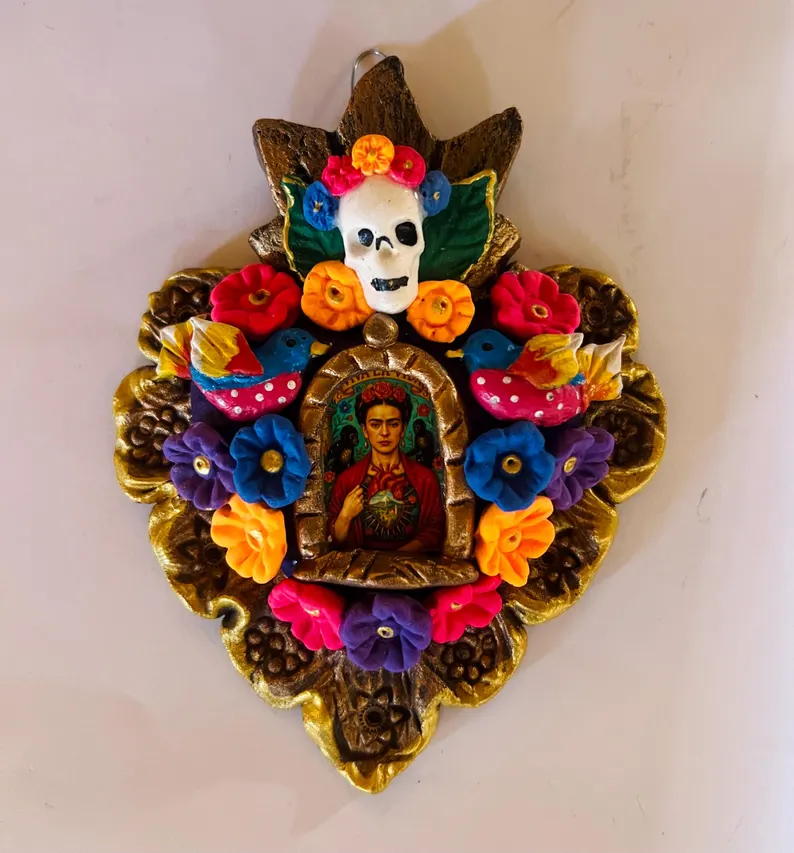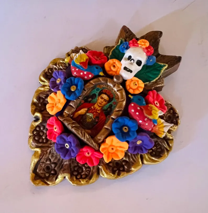 Beautiful and very unique handmade Mexican Heart with a Frida Kahlo picture on it.