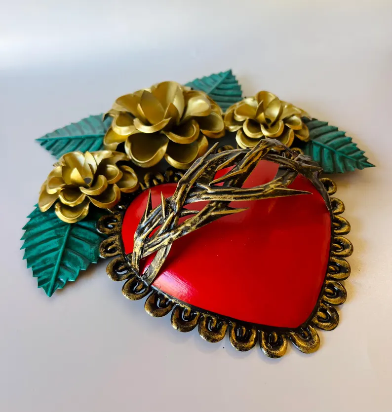 eautiful and Unique Mexican Tin Thorns Heart